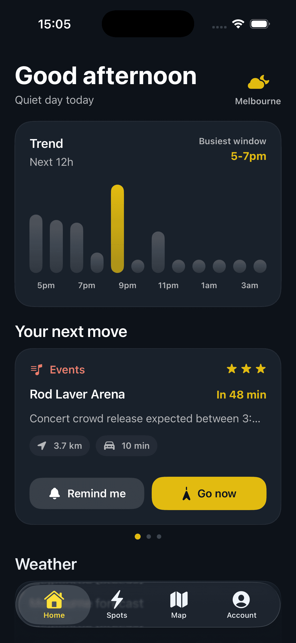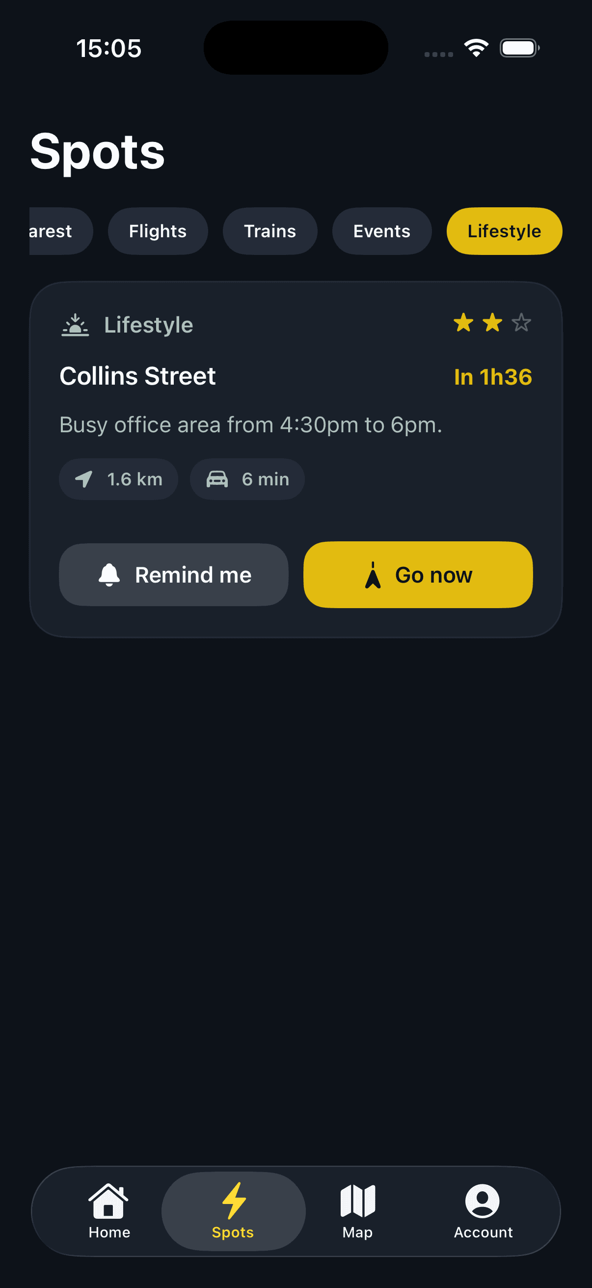 See the best pickup spots for the next 12 hours: flights landing, events ending, train arrivals. Tap a reminder and show up right on time, not after everyone else.